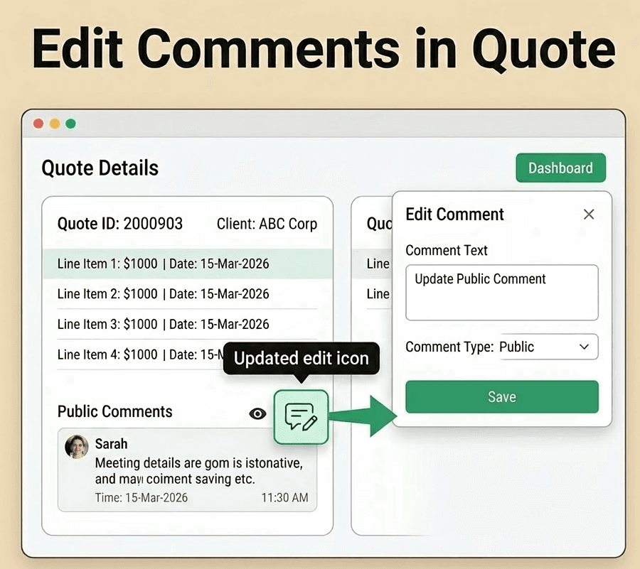 B2B Quote Comment Edit Feature