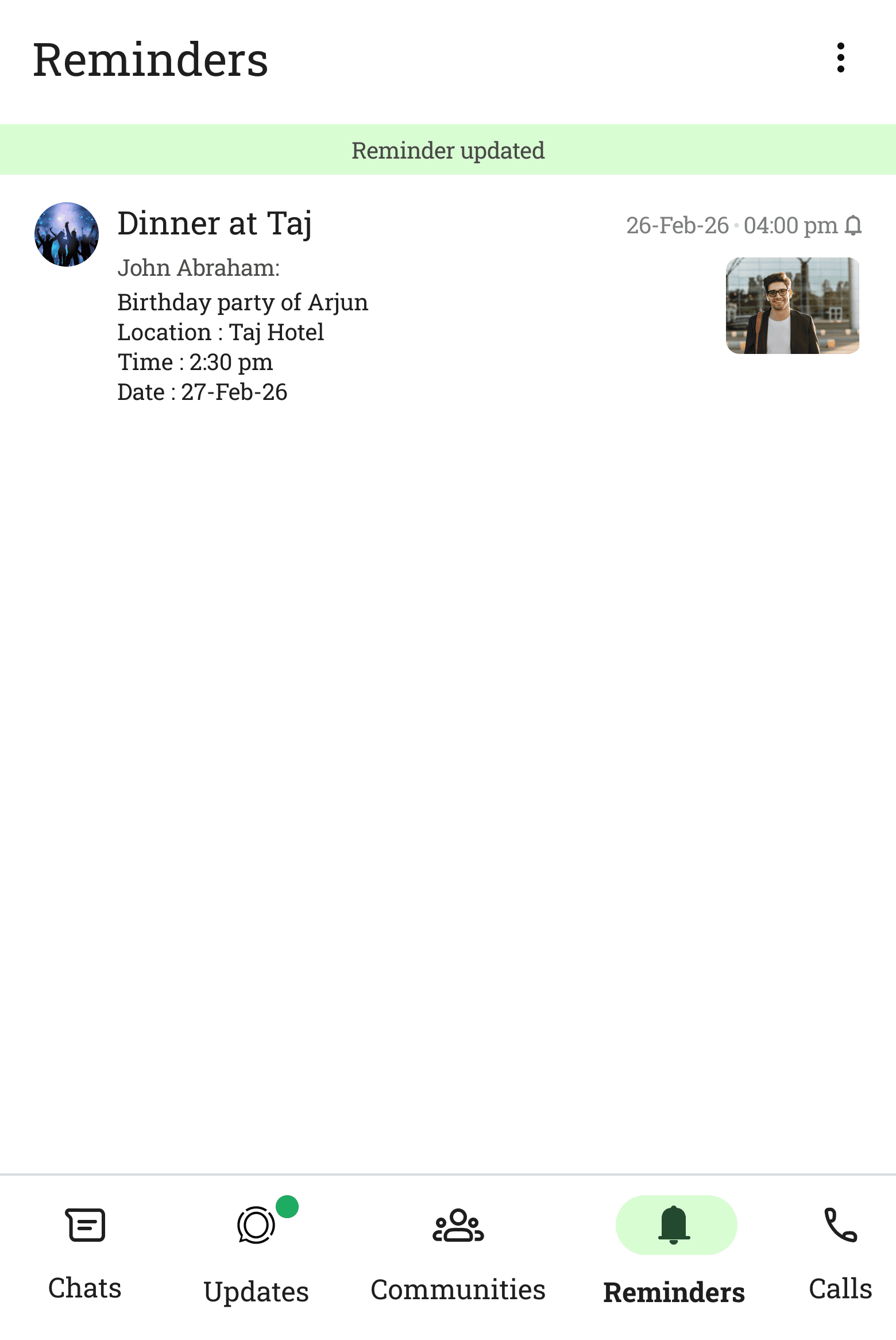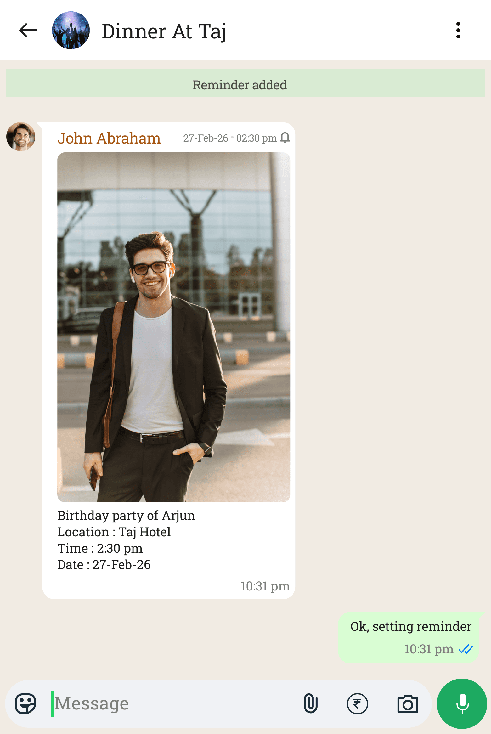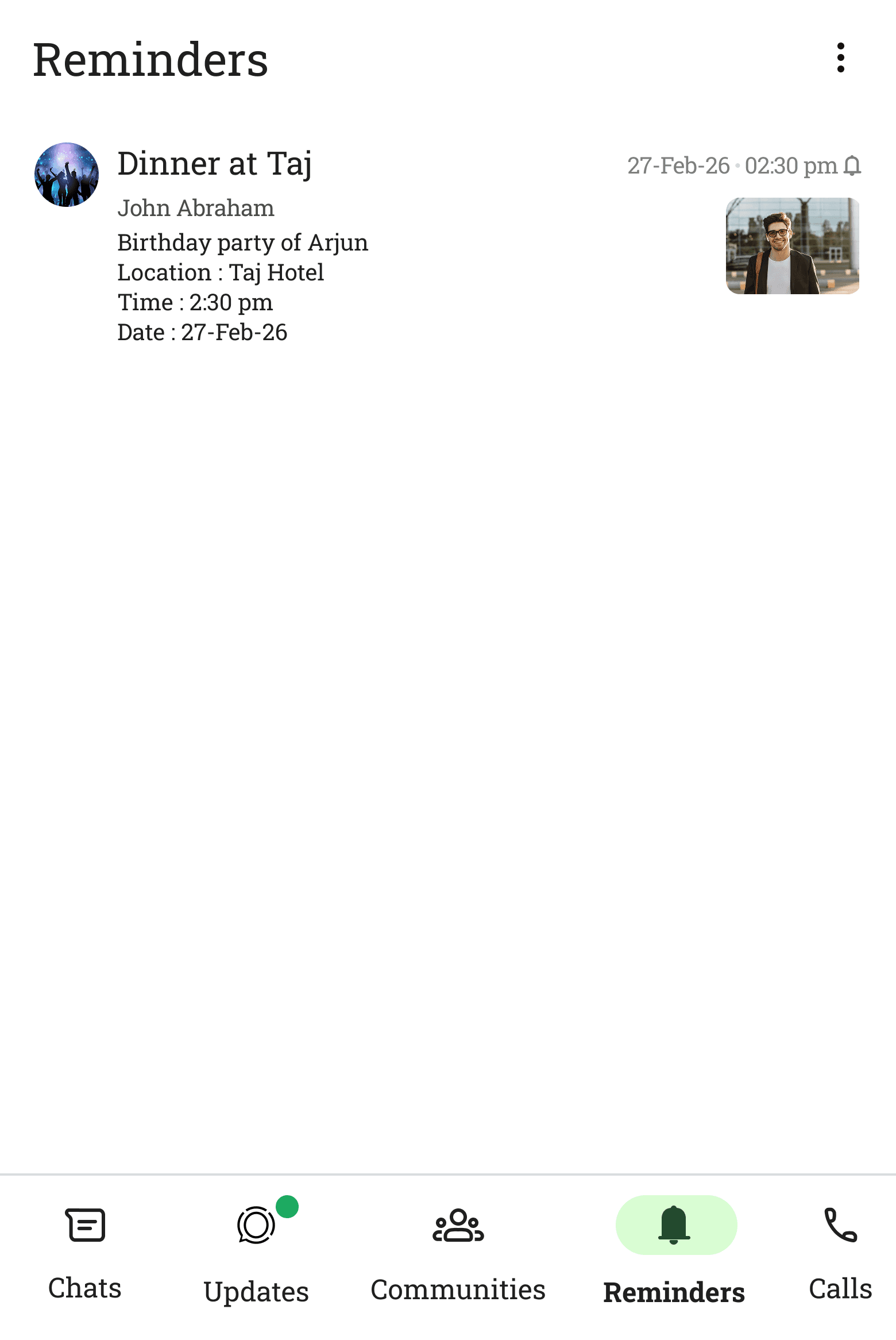For WhatsApp Business users, message-level reminders add real professional utility — follow up on a customer query, a payment confirmation, or a service request without losing it in a high-volume inbox.
